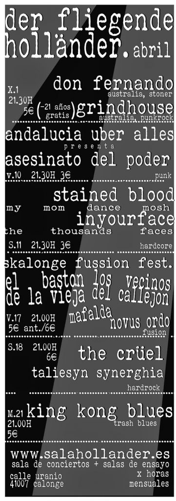 21.30H 5€ entrada única (gratis para menores de 21 años)