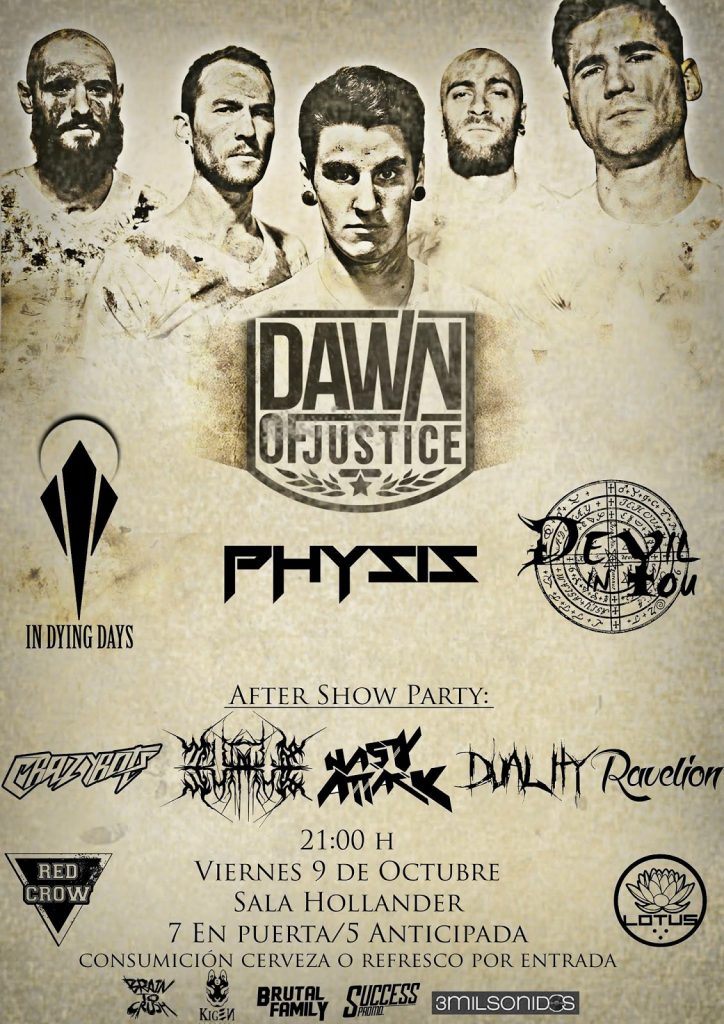 Teloneando a este grupazo, tendremos a otras 3 grandes bandas de Andalucía, Physis, In Dying Days, y Devil in You