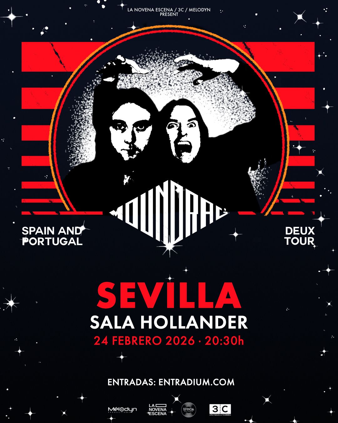 Camille y Colin, hermanos de la Bretaña francesa, forman Moundrag, una banda donde Dr. Mad Drum marca el ritmo en la batería y Organ Fury desata toda su furia desde los teclados, mientras ambos comparten las voces. Juntos demuestran que no hacen falta guitarras para hacer un rock ‘n’ roll potente, lisérgico y absolutamente demoledor. Si ya les has visto en directo, sabes que lo suyo no es solo un concierto, sino un auténtico espectáculo de arena setentera llevado a las salas de hoy. Si no los has visto aún, estás a tiempo.